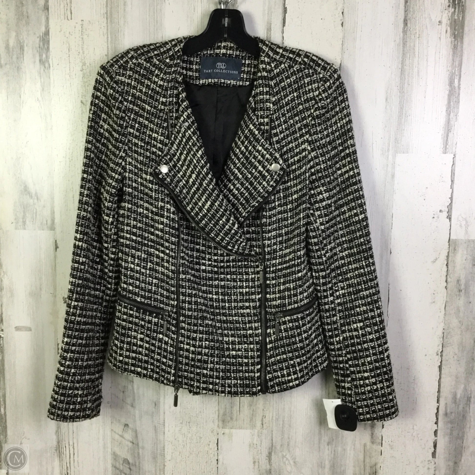 Jacket Moto By Tart In Black & Cream, Size: M